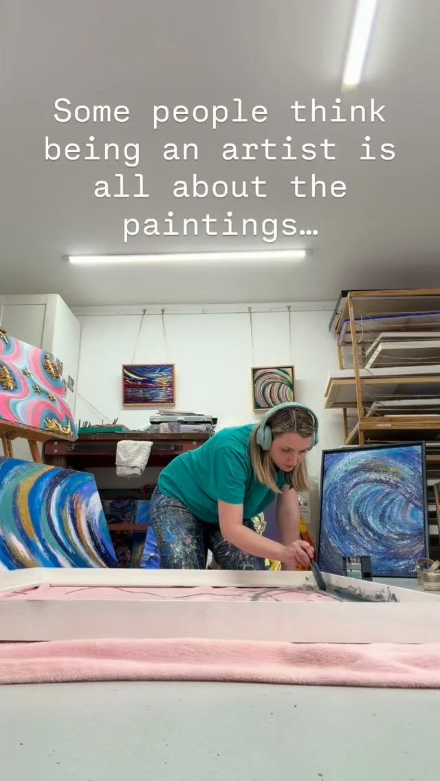 Hello, Iโm Chloe and thank you for checking out my art! Iโve been painting professionally for 6 years and for my own enjoyment since childhood. My passion for the ocean and art was sparked living in Southern Portugal as a teenager and has never really left me. Now living in the South-West of England with my young family & trusty dog, I create water flow pieces which are heavily textured, bold but also therapeutic. For a long time I thought I painted because I enjoy it (and I do really love it) but Iโve also realised that painting water makes me feel closer to it. I always start a painting from the source of the waters power and it brings me to the beach on a stormy day, when the waves are crashing and lifeโs challenges feel insignicant in comparison to the vastness of the ocean. I feel my most peaceful next to the ocean. Through selling my work Iโve found that my art brings that to others too and for that Iโm eternally grateful.