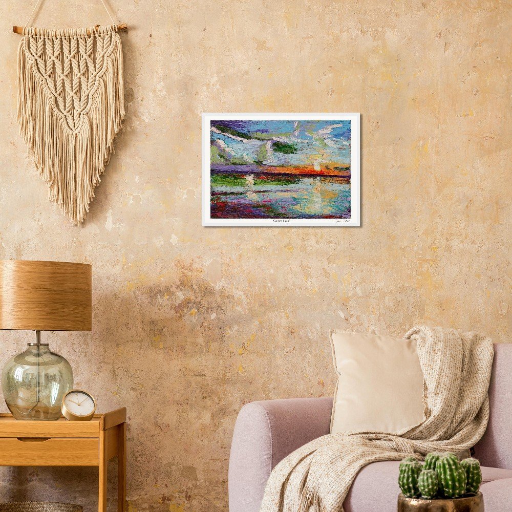 Our sturdy wooden framed posters are ready to hang and made with master's edition, museum-quality paper—perfect for art lovers seeking luxury and world-class quality: Ready-to-hang: Includes hanging kit, ready to hang directly on the wall. Frame Material: Durable pine wood. Frame Measurements: 20-25mm (0.79"-0.98") thick, 10-14mm (0.4"-0.6") wide. Paper Weight: 250 gsm (110 lb), Thickness: 0.29 mm (11.4 mils). Paper Finish: Matte, uncoated, natural white (off-white). Protection: Shatterproof plexiglass protects the poster. Sustainable Paper: FSC-certified materials or equivalent. Available Sizes: 15 sizes in inches (US&CA) and cms (rest of the world). Learn about paper types and their unique textures and finishes here. No minimum orders, printed and shipped on demand.