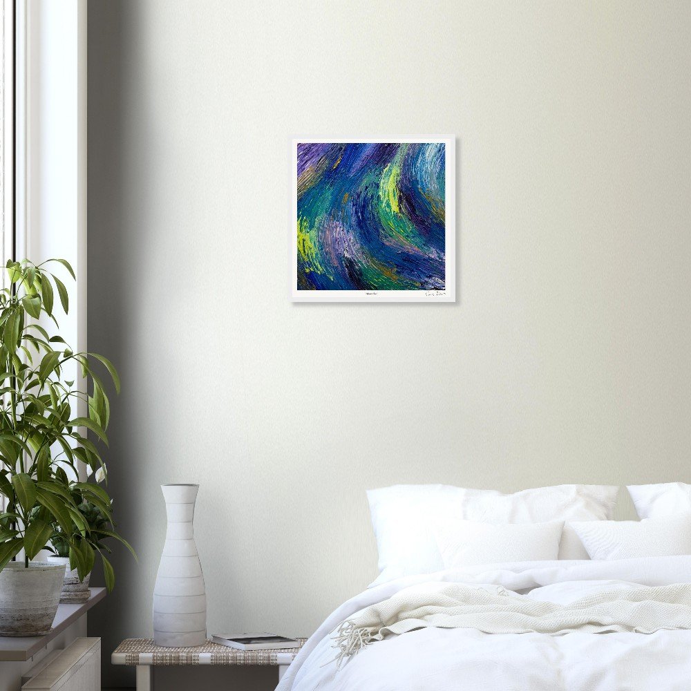 Our sturdy wooden framed posters are ready to hang and made with master's edition, museum-quality paper—perfect for art lovers seeking luxury and world-class quality: Ready-to-hang: Includes hanging kit, ready to hang directly on the wall. Frame Material: Durable pine wood. Frame Measurements: 20-25mm (0.79"-0.98") thick, 10-14mm (0.4"-0.6") wide. Paper Weight: 250 gsm (110 lb), Thickness: 0.29 mm (11.4 mils). Paper Finish: Matte, uncoated, natural white (off-white). Protection: Shatterproof plexiglass protects the poster. Sustainable Paper: FSC-certified materials or equivalent. Available Sizes: 15 sizes in inches (US&CA) and cms (rest of the world). Learn about paper types and their unique textures and finishes here. No minimum orders, printed and shipped on demand.