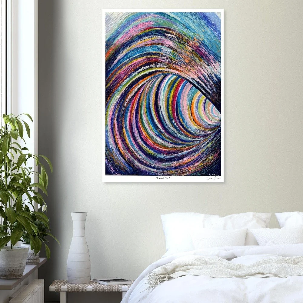 Discover our Fine Art Posters - Iconic artworks with vivid colors using giclée fine art 12-color printing technology. Perfect for art lovers and designers alike. Color Vibrancy: Our 12-color fine art printing technology delivers vivid, accurate colors with stunning depth, far beyond standard 4-color inkjet printing technology. Paper Finishing: Smooth matte finish for a clean, glare-free display. Paper Weight: 200 gsm (80 lb), thickness: 0.26 mm (10.3 mils). Available Sizes: Offered in a variety of sizes to fit any space or frame. Eco-Friendly Materials: Printed on environmentally conscious, FSC-certified paper. No minimum orders, printed and shipped on demand to guarantee freshness and customization for every order.